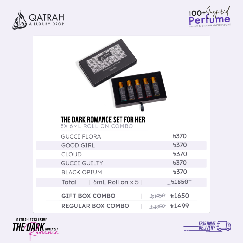 ৳ 1,499 – ৳ 1,650Price range: ৳ 1,499 through ৳ 1,650THE DARK ROMANCE SET FOR HER